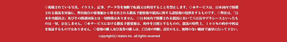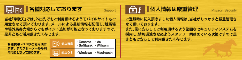 弊社「韋駄天」は確かな裏付けの取れた情報を細かく精査し、皆様の的中率が少しでも向上するようお手伝いをさせていただいています。